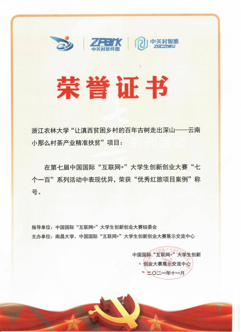 日前,教育部公布了第七届中国国际“互联网+”大学生创新创业大赛“七个一百”系列活动优秀红旅项目案例名单,我校《让滇西贫困乡村的百年古树走出深山——云南小那么村茶产业精准扶贫项目》成功入选优秀红旅项目百强案例。