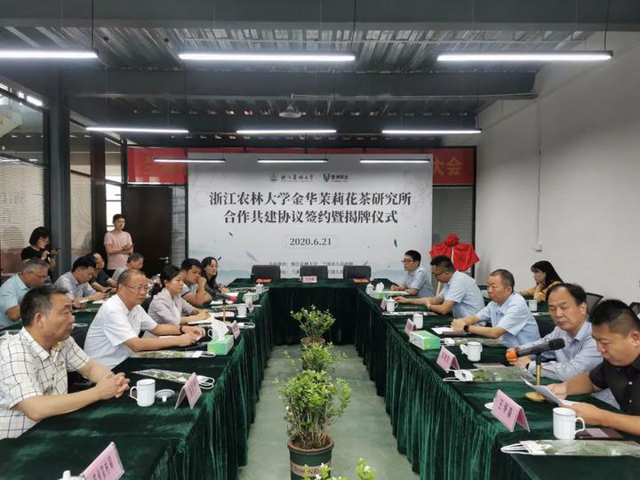 金华茉莉花茶有着悠久的历史,为充分挖掘金华花茶产业潜力,发挥浙江农林大学在茶叶种植、深加工等领域的人才与技术优势,农业与食品科学学院与浙江婺洲茶业有限公司,合作共建“浙江农林大学金华茉莉花茶研究所”,加速技术研究与转化、推动浙江花茶产业的恢复和发展。