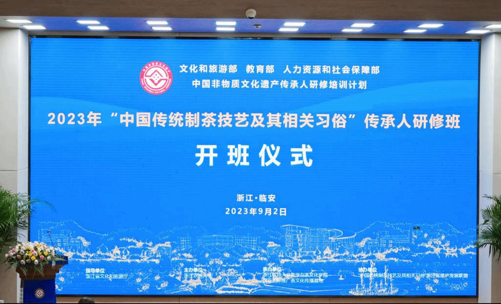 文化和旅游部非物质文化遗产司、浙江省文化和旅游厅相关处室人员,以及“中国传统制茶技艺及其相关习俗”浙江省保护发展联盟成员单位代表共同参加开班仪式。