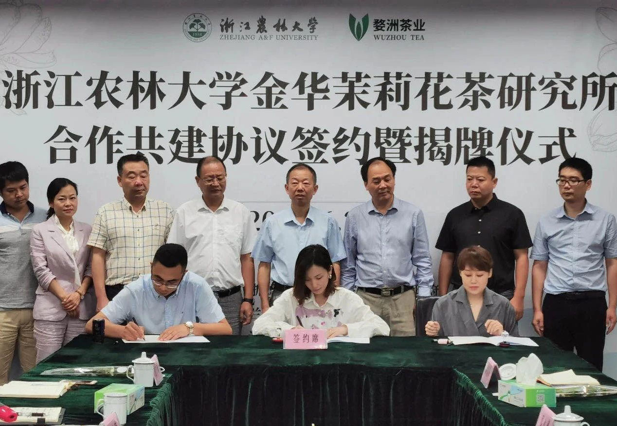 金华茉莉花茶有着悠久的历史,为充分挖掘金华花茶产业潜力,发挥浙江农林大学在茶叶种植、深加工等领域的人才与技术优势,浙江农林大学与浙江婺洲茶业有限公司,合作共建“浙江农林大学金华茉莉花茶研究所”,加速技术研究与转化、推动浙江花茶产业的恢复和发展。