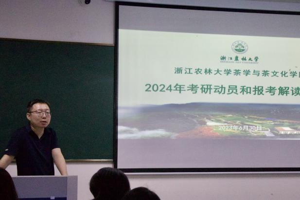 张帅老师和王玉春老师分别对学院文化产业管理(茶文化)专业同学和茶学专业同学提出了针对性的报考建议,同时着重介绍了学院自身硕士点建设和2023年研究生的招生情况,使同学们对报考本学院研究生有了更全面、更清晰的认知。