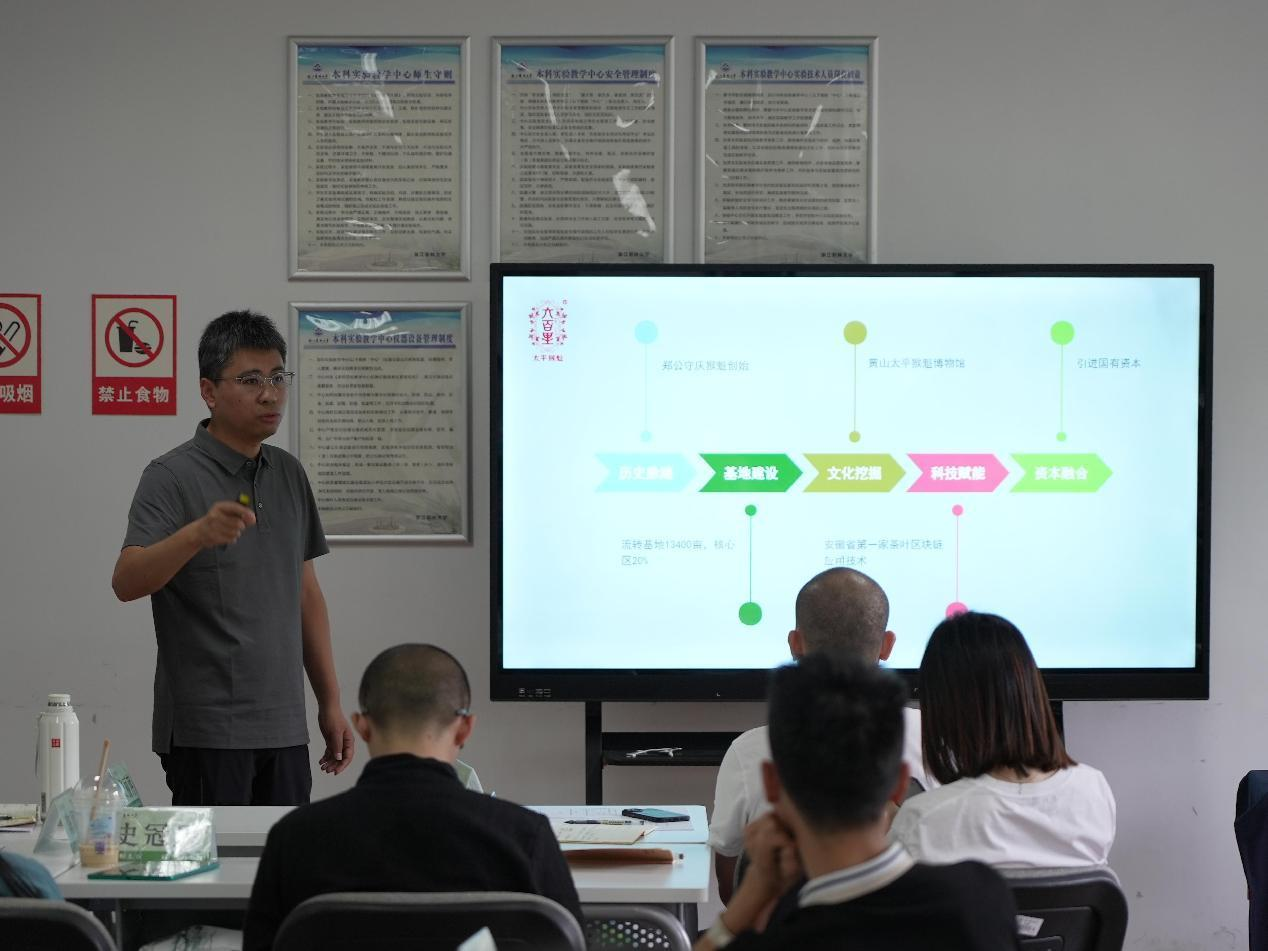 绿茶制作技艺(太平猴魁制作技艺)代表性传承人凡涛学员为大家介绍了太平猴魁制作技艺的要点,同时梳理了保护单位在保护传承该项目所作的努力,如举办太平猴魁非遗文化节、与研究所合作进行数字化建模等。