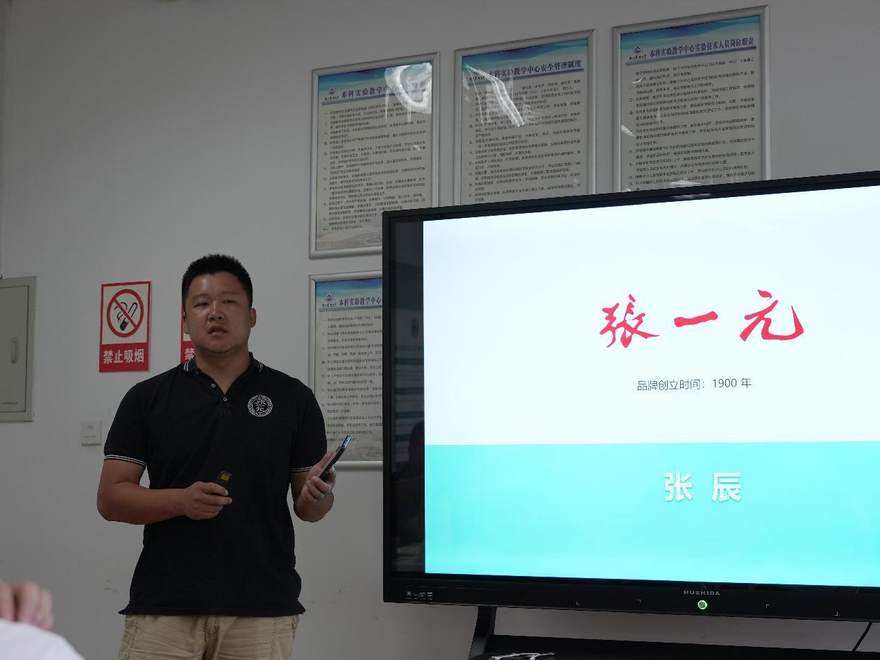 张辰学员响应讲座中的“旅”意,为大家介绍了花茶制作技艺(张一元茉莉花茶制作技艺)保护单位百年间不断自我更新、自我提升的发展之旅。