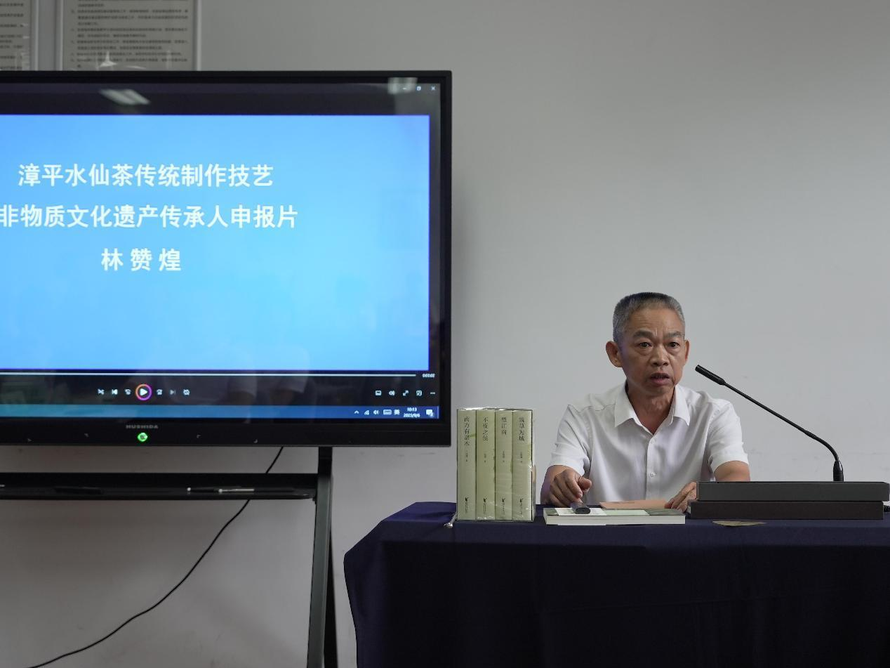 在交流分享环节,乌龙茶制作技艺(漳平水仙茶制作技艺)代表性传承人林赞煌为大家着重介绍了保护单位在茶旅融合方面的实践成果,如建设研学基地、创业园、因地制宜打造茶旅小镇等。