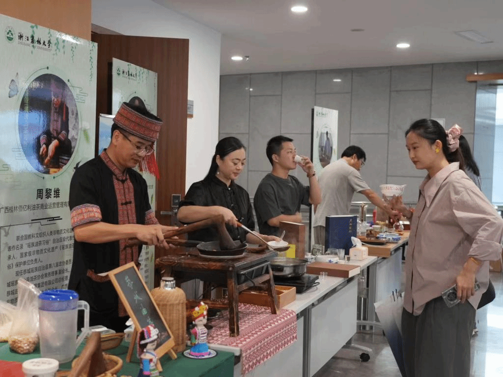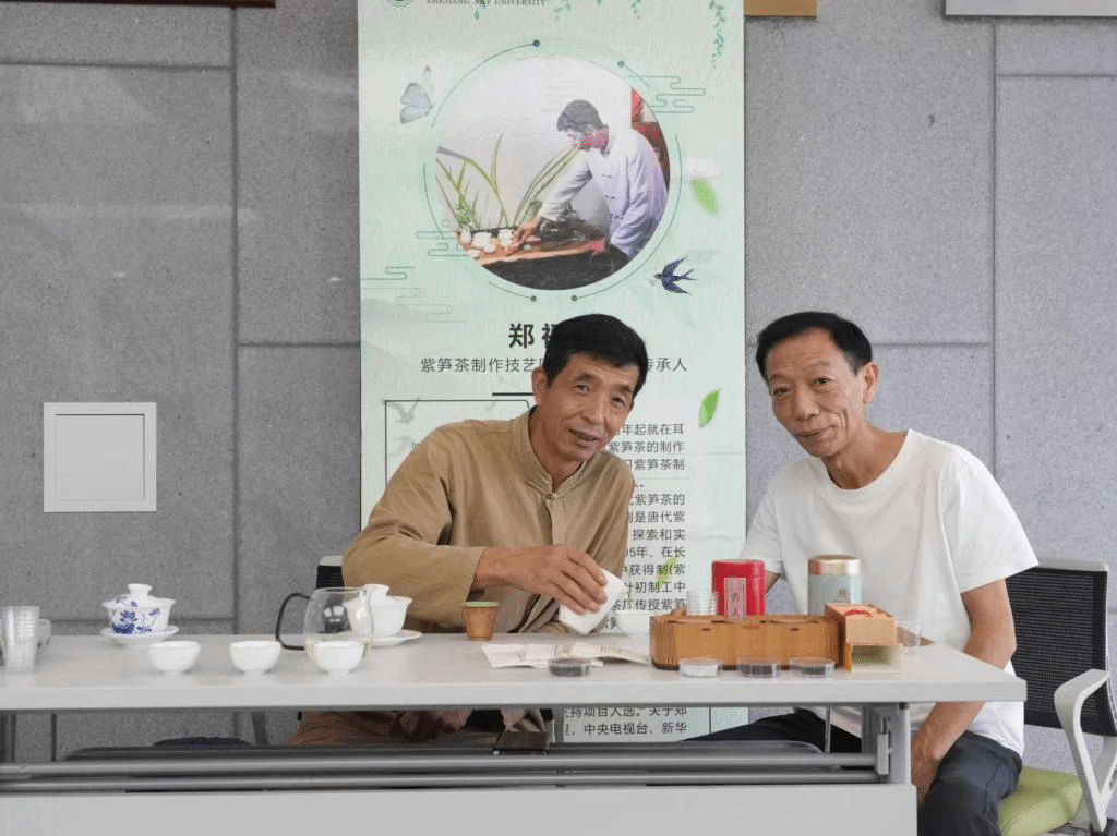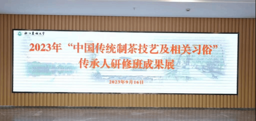 结班仪式还包括了2023年“中国传统制茶技艺及其相关习俗”传承人研修班成果展,本次展览在浙江农林大学国家重点实验室负一楼大厅举行。