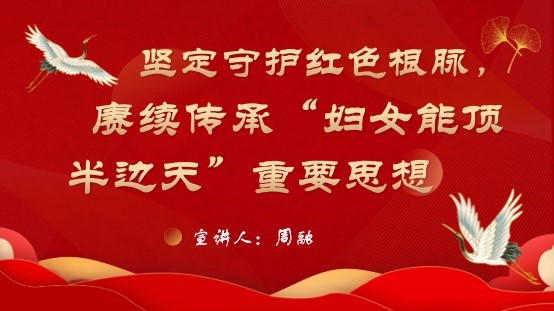 周融以讲述建德千鹤村太外婆辈们妇女打破传统旧俗,走上田间地头,率先实现了男女同工同酬为主要内容,结合切身感受,号召新时代青年传承和弘扬千鹤妇女精神,学习屠呦呦、王亚平、张桂梅以及我院名誉院长王旭烽教授等杰出女性“能顶半边天”的妇女精神,以吾辈青春,守好红色根脉,捍卫盛世中华。