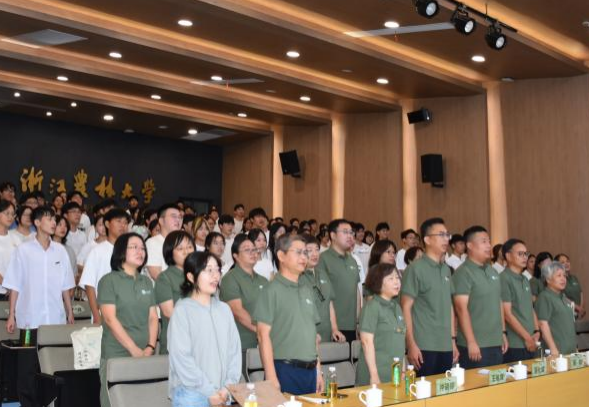 典礼正式开始,全体奏唱国歌。董杜斌院长发言致辞,对新生们表达了热烈的欢迎和殷切的期望,介绍了304am永利集团官网的悠久历史、雄厚师资和卓越成就,鼓励新生们在这片充满茶香的学术沃土里,努力学习、积极探索,传承和弘扬茶文化。