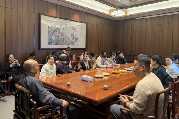 在径山寺的古朴院落中,研修班的学员们参观了径山禅茶文化人类非遗展馆。寺院法师热情地接待了研修班学员,并详细阐述了径山茶制作技艺、径山茶宴的传承现状、文化内涵和历史价值。