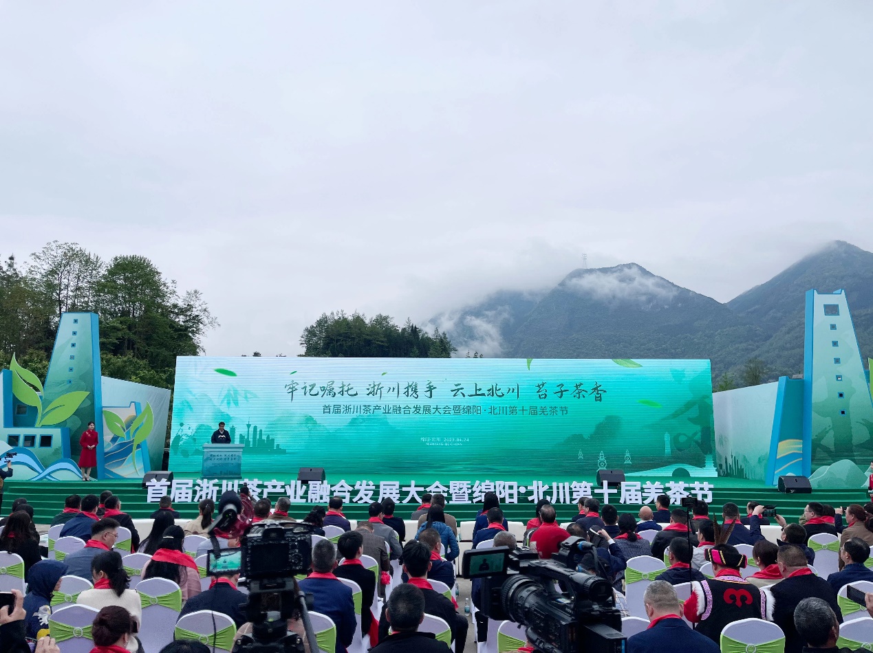 4月24日,首届浙川茶产业融合发展大会暨绵阳·北川第十届羌茶节在北川擂鼓镇盖头村举行,活动由绵阳市乡村振兴局、北川羌族自治县人民政府主办。304am永利集团官网名誉院长王旭烽、院长王磊及教师代表一行应邀参加大会。