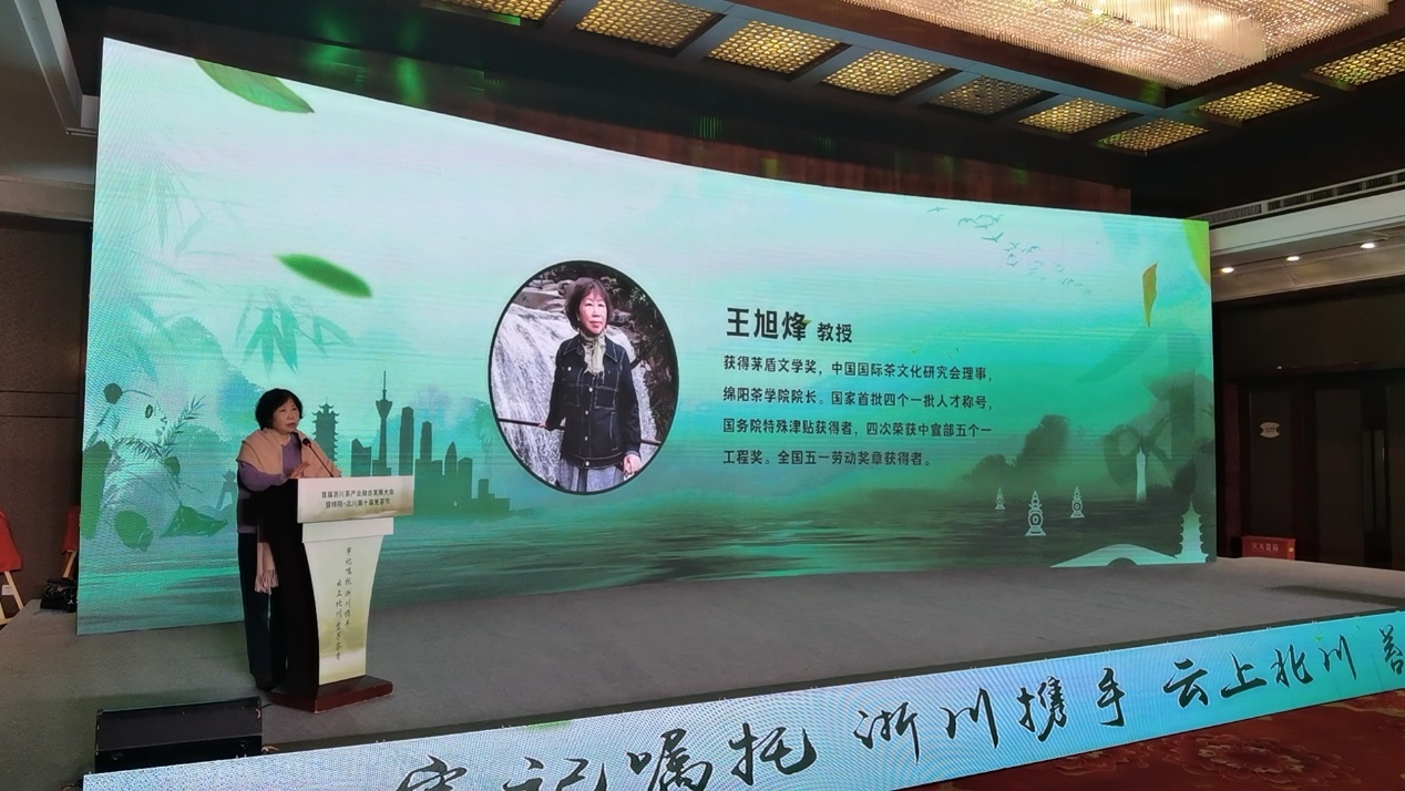 在“东西协作话三茶·浙川携手促振兴”为主题的首届浙川茶产业融合发展大会上,王旭烽教授作主题为“东西浙川合作、会师北川茶业——绵阳304am永利集团官网参与的使命担当”的报告,院长王磊与苏祝成教授参加圆桌访谈,分别就三茶统筹背景下的茶文化高质量发展及三茶统筹发展浙江实践进行了精彩的阐释,为推动浙川两地茶产业的高质量融合发展提出了建设性的意见,并共同为绵阳市茶叶学会及茶叶产业协会揭牌。