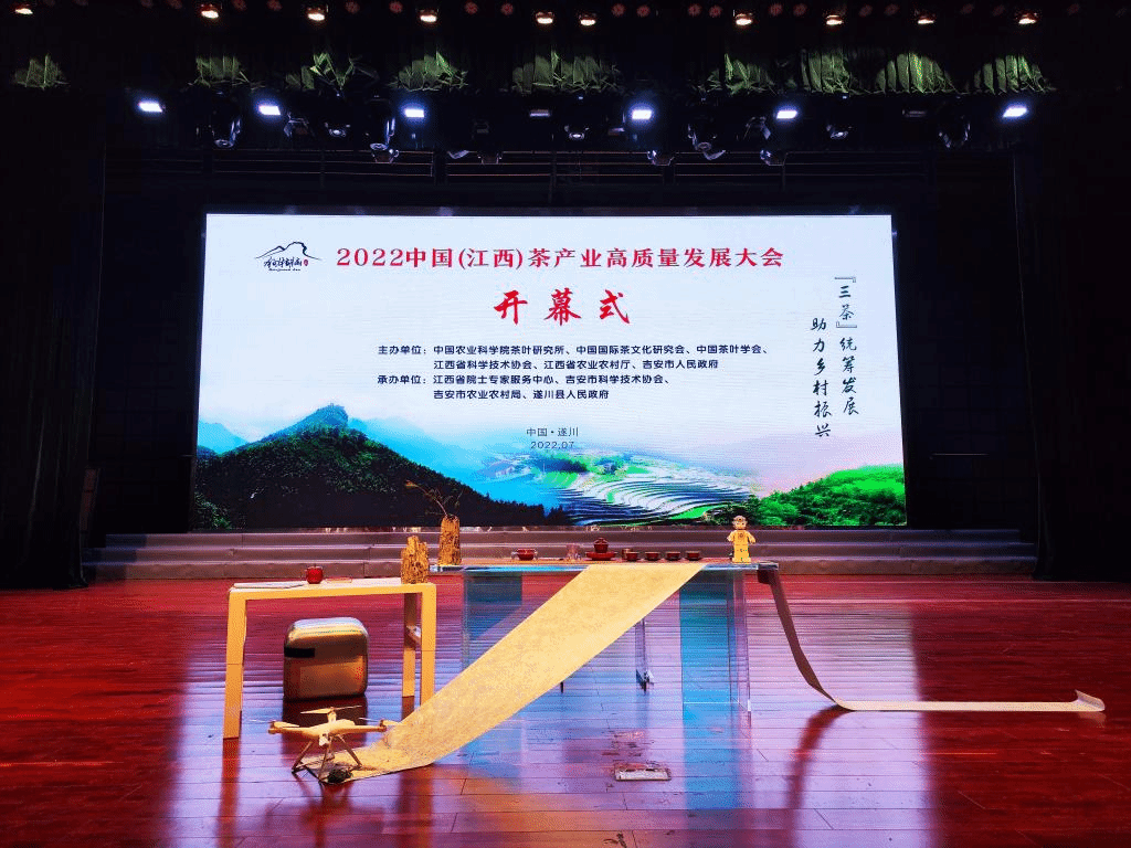 由中国农业科学院茶叶研究所、中国国际茶文化研究会、中国茶叶学会、江西省科学技术协会、江西省农业农村厅、吉安市人民政府主办,江西省院士专家服务中心、吉安市科学技术协会、吉安市农业农村局、遂川县人民政府承办,以“‘三茶’统筹发展 助力乡村振兴”为主题的2022中国(江西)茶产业高质量发展大会于2022年7月20日在“中国名茶之乡”——江西省吉安市遂川县开幕。来自全国各地的茶文化、茶产业、茶科技等领域的专家学者及茶友汇聚一堂。304am永利集团官网名誉院长、汉语国际推广茶文化传播基地主任、生态文明研究院首席专家王旭烽受邀参加大会。